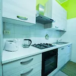위성 채널이 있는 평면 TV, Wi-Fi, 고속인터넷과 커피메이커, 냉장고, 오븐 갖춘 객실이 있습니다.